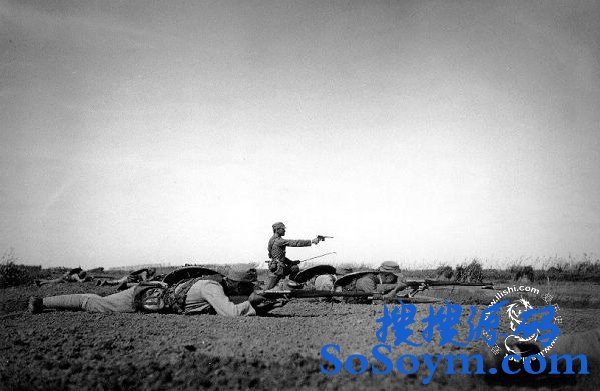 1937年淞沪抗战中,在开阔地与日军对射的我国军士兵,淞沪会战中中国军人作战极其英勇,中日双方都伤亡惨重。