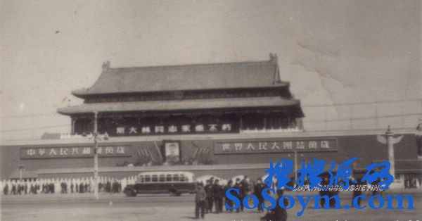 1953年斯大林逝世时,天安门城楼正中挂着斯大林半身像,天安门城楼上悬挂着横条幅“斯大林同志永垂不朽”,肖像两侧各有5面旗帜(东面最靠里的一个旗杆看不清楚,西边很清楚)。